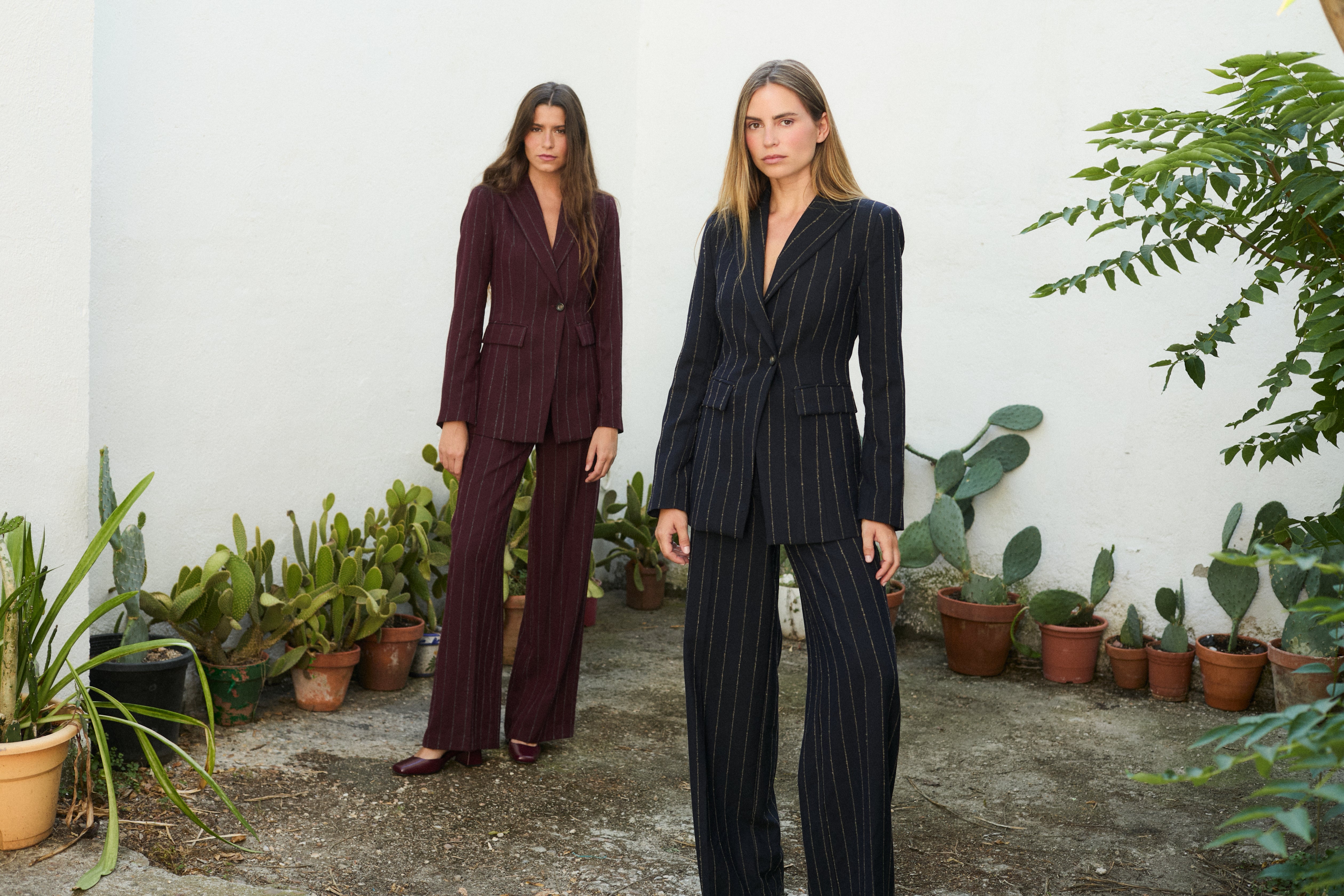 Blazer entallada con hombreras en color berenjena con detalle bordado en tono gris. Cierre cruzado con botón.