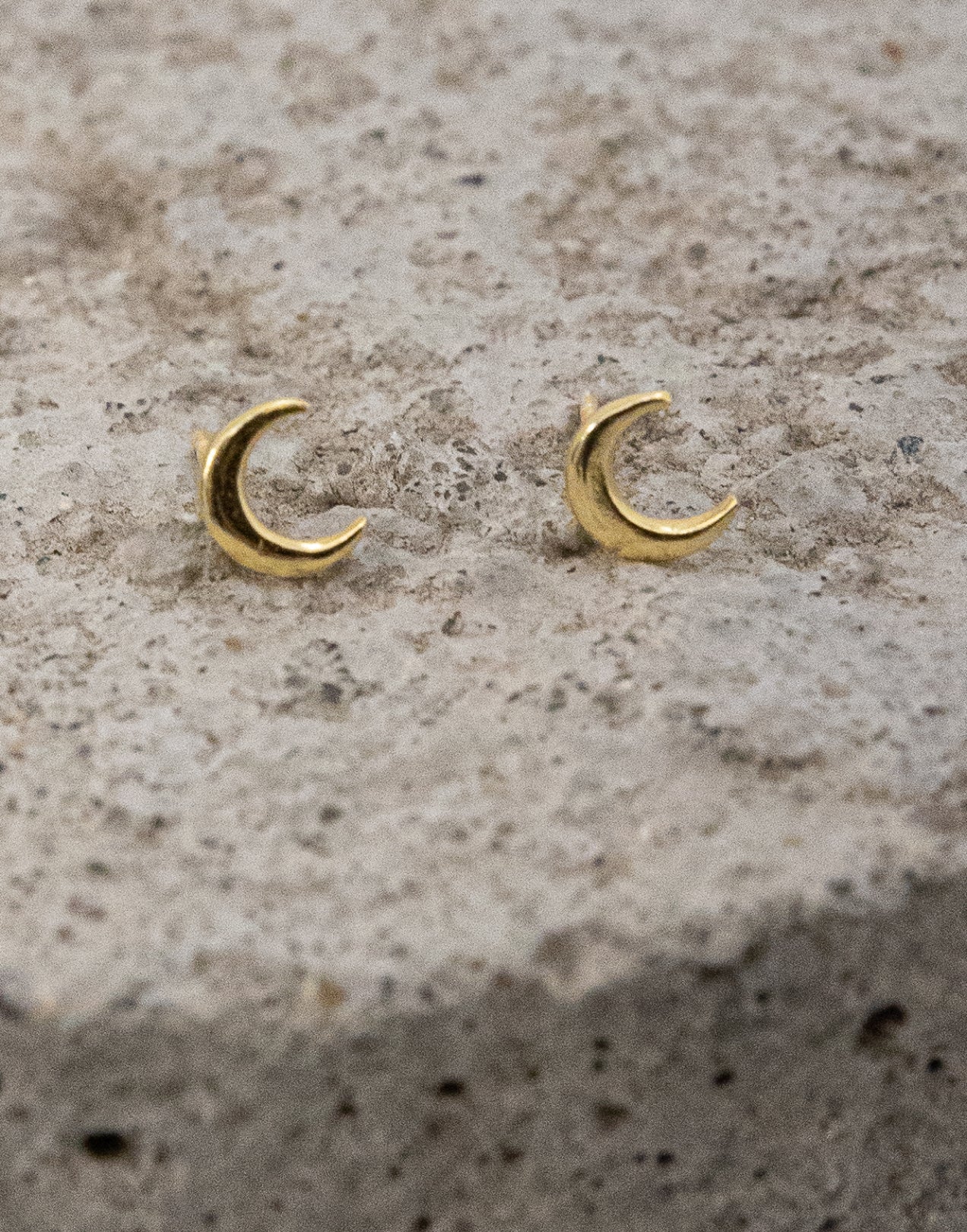 - Pendientes pequeños en forma de luna con tuercas diseñadas para una mayor comodidad